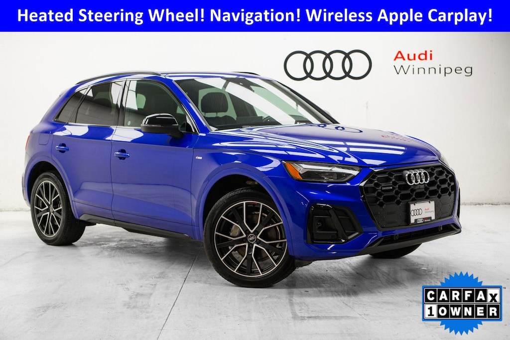It's easy to see why the Q5 is one of the best selling SUV's in it's class! This Carfax 1 owner, super low KM, locally owned 2022 Audi Q5 with Quattro All-Wheel Drive just arrived on trade in popular Progressiv trim! You get a long list of options including: heated leather seating w/driver memory, a huge panoramic sunroof, navigation w/Audi's gorgeous Virtual Cockpit, heated steering wheel, wireless Apple Carplay & Android Auto, foot activated power tailgate, lane departure warning, blind spot monitoring w/rear cross traffic alert and much more!