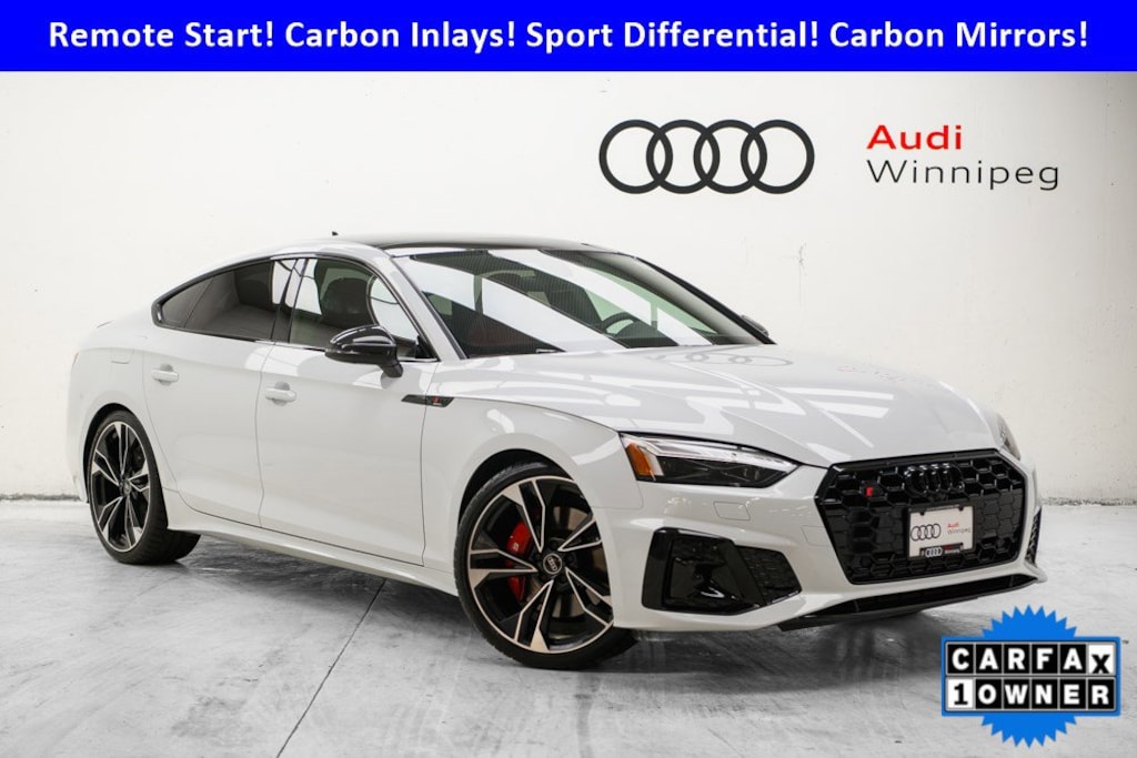 Save over $9500 from new on this locally owned, super low KM AND accident-free S5! With 349 horsepower from it's turbocharged 6 cylinder power train and pavement gripping Quattro All-Wheel Drive, this ultra low KM 2024 Audi S5 Sportback Technik offers the ability to accelerate from 0-60mph in as little as 4.3 seconds while the diamond quilted leather seat massages you! You'll enjoy a long list of luxurious features such as: heated massaging diamond quilted leather seating w/driver memory, heated steering wheel, remote starter, a huge panoramic sunroof, top view 360 degree camera system, navigation w/Audi's gorgeous Virtual Cockpit, premium Bang & Olufsen sound system, power hands-free tailgate and a full compliment of safety features such as adaptive cruise control, lane keep assist and blind spot monitoring w/rear cross traffic alert.