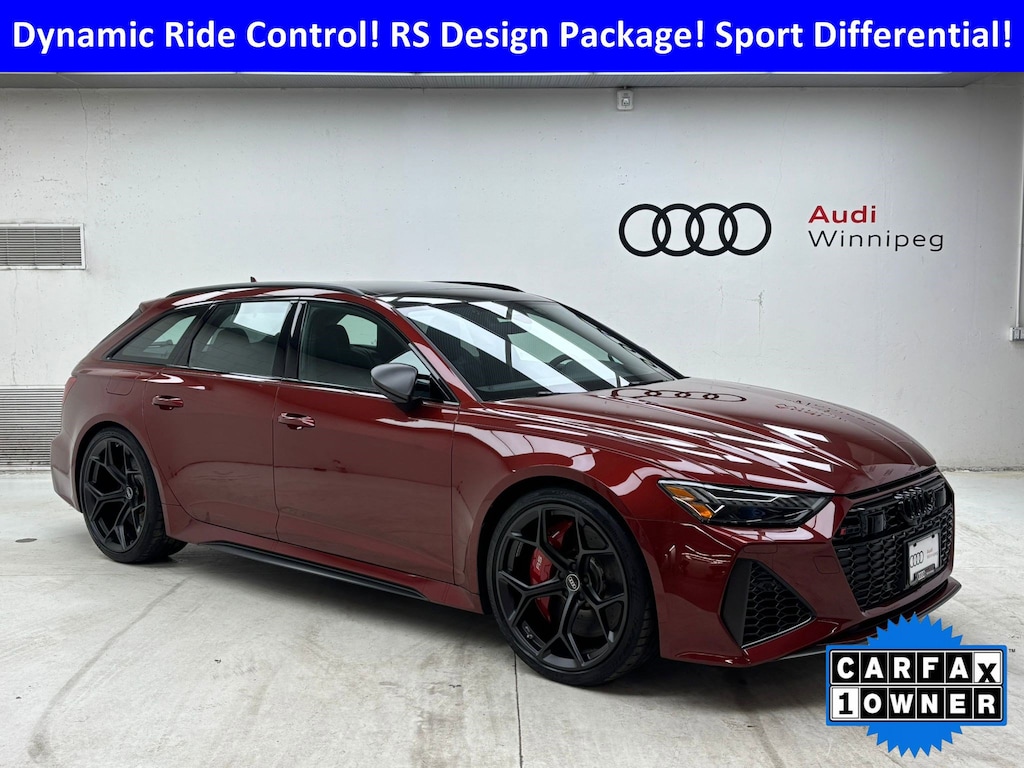 NO LUXURY TAX!!! Fire up the 621 horsepower twin-turbo V8 in this ultra low KM DEMO 2025 Audi RS6 Avant performance and let the Quattro All-Wheel Drive system accelerate from 0-60mph in as little as 3.3 seconds! Dressed to impress in stunning Grenadine Red Metallic, this rare find includes a long list of highly desirable extra options including: