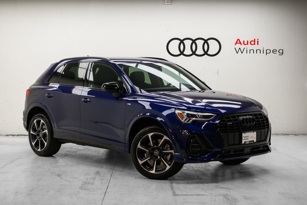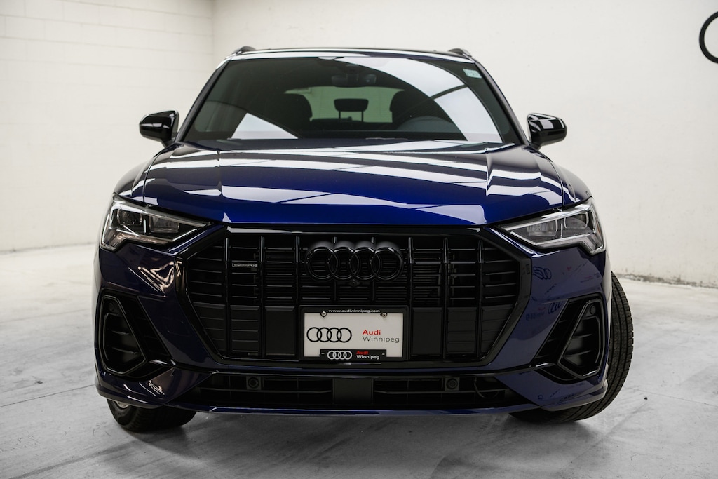 This Audi Q3 delivers a Intercooled Turbo Regular Unleaded I-4 2.0 L/121 engine powering this Automatic transmission. NAVARRA BLUE METALLIC, BLACK W/GRAY STITCHING, LEATHER SEATING SURFACES, BLACK RINGS & BADGING.