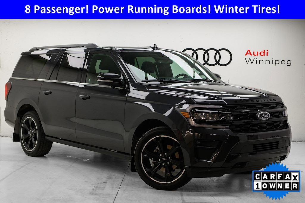 Looking for a full-sized SUV with room for 8 people PLUS all their gear and the ability to tow up to 9000lbs? Check out this Carfax 1 owner, accident-free 2024 Ford Expedition Limited MAX that just arrived in sinister looking Dark Matter Grey Metallic! Lots of factory warranty remaining plus the rare 8 passenger seating option and a very long list of features such as: heated and ventilated leather seating w/driver memory, heated steering wheel, a huge panoramic sunroof, remote starter, power tailgate, premium Bang & Olufsen sound system w/subwoofer, power running boards, 360 degree camera system, adaptive cruise control and blind spot monitoring w/rear cross traffic alert.