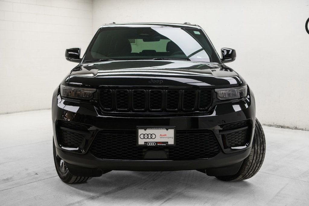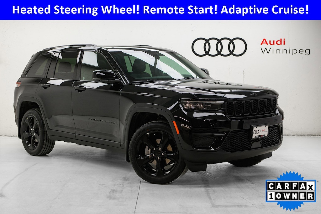 Save over $15,900 + tax from new on this super low KM, virtually brand new Trail Rated 2025 Jeep Grand Cherokee 4x4 that just arrived in sinister looking Altitude trim! Tons of factory warranty remaining plus a very long list of features such as: heated steering wheel, power tailgate, remote starter, adaptive cruise control, blind spot monitoring w/rear cross traffic alert and more. Plus as an added bonus, this stunning Diamond Black Crystal Pearl Jeep includes the following extra options: