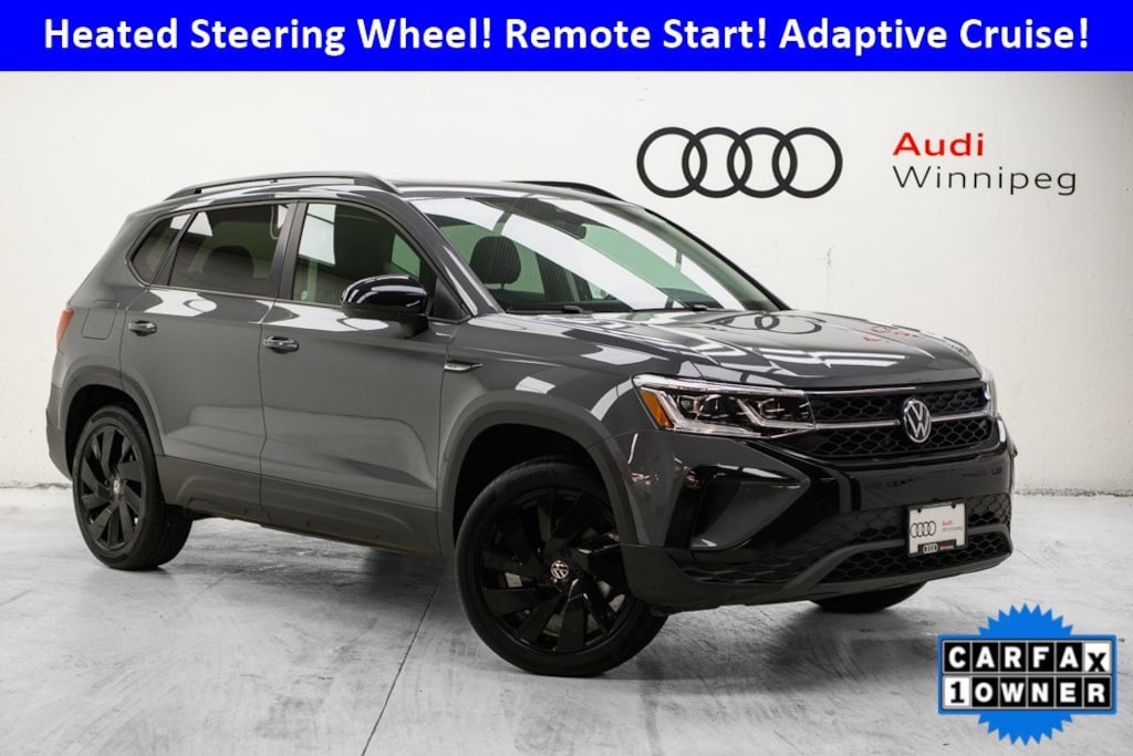Looking for a budget friendly SUV with lots of features, amazing fuel economy and lots of factory warranty remaining? Here it is! Check out this ultra low KM 2024 VW Taos with 4Motion All-Wheel Drive that just arrived as a DEMO directly from VW Canada in eye catching Comfortline Black Edition trim! You'll enjoy full factory warranty until 2028 or 80,000km plus a very long list of features such as: heated leather trimmed seating, heated steering wheel, remote start, a huge panoramic sunroof, rear view camera, gloss black 19 inch rims, Apple Carplay & Android Auto and adaptive cruise control!